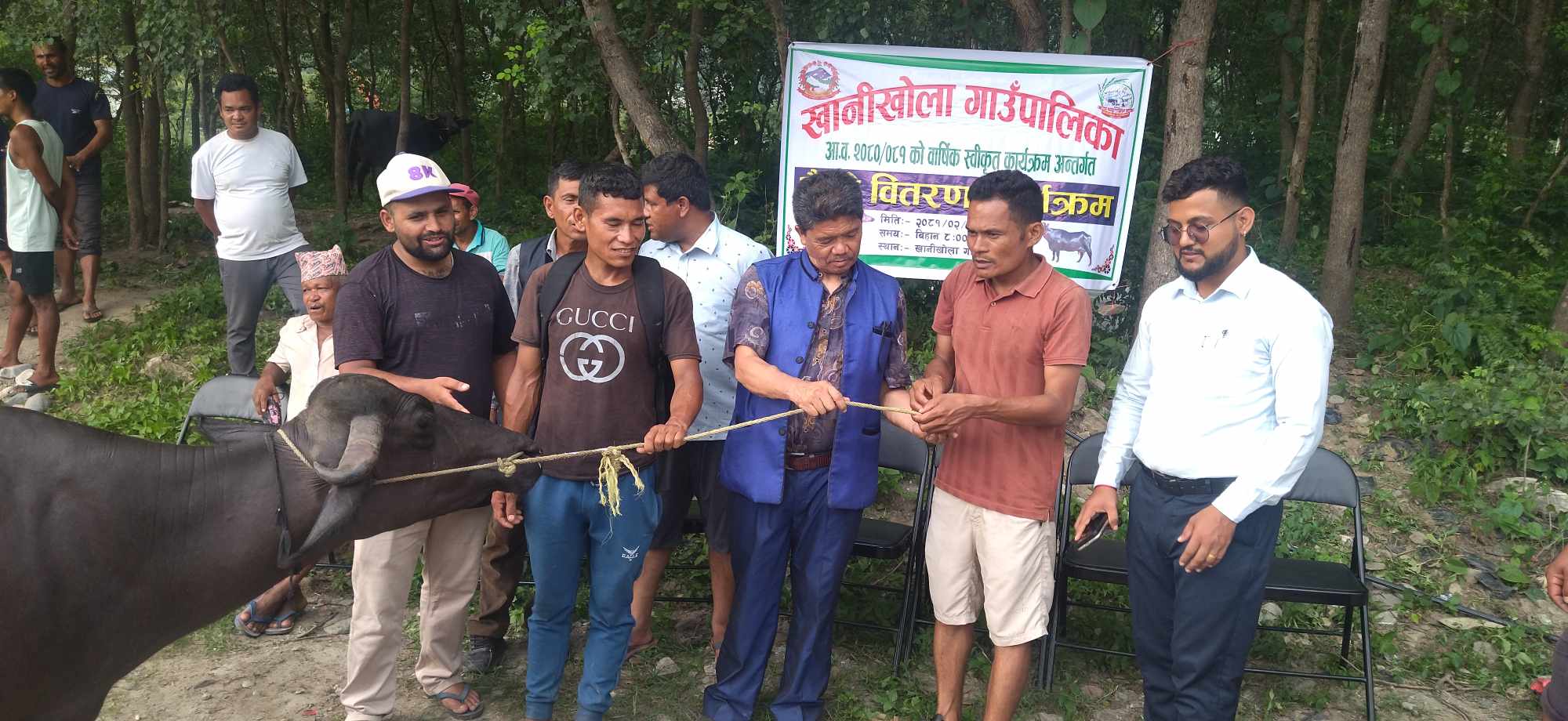 खानिखोलाका किसानलाई पशुपालनमा आकर्षित गर्न अनुदानमा भैँसी वितरण