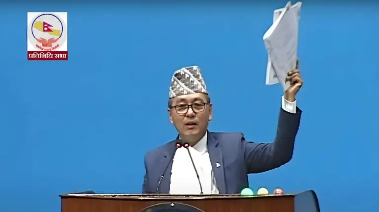 राजेन्द्र लिङ्देनले रोष्ट्रममै च्याते भौतिक मन्त्रालयको बजेट पुस्तिका