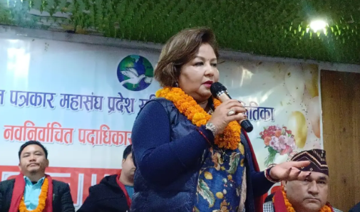 नेपाल पत्रकार महासङ्घ सुदूरपश्चिम प्रदेश कार्यसमिति तथा महासङ्घ कैलाली शाखाका नवनिर्वाचित पदाधिकारीको शनिबार धनगढीमा भएको पदस्थापन समारोहमा उनले मुलुकको विकासका लागि आवश्यक राजनीतिक स्थायित्वका लागि वर्तमान सरकार गठन भएको र सोहीअनुसार अघि बढेको बताइन् ।