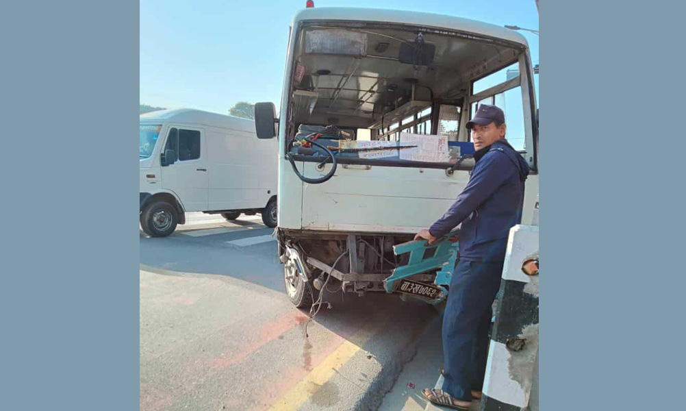 कोटेश्वरदेखि बानेश्वर आइरहेको बा ३ ख ७०६२ नम्बरको बसले सोही दिशाबाट आइरहेको बा.प्र.०१–०२६ च २९२७ नम्बरको मारुती भ्यान र सोही दिशाबाट आइरहेको बा.प्र.०२–०५३ प ३८४७ नम्बरको २२०अ को मोटरसाइक आपसमा ठोक्किँदा दुर्घटना भएको हो ।