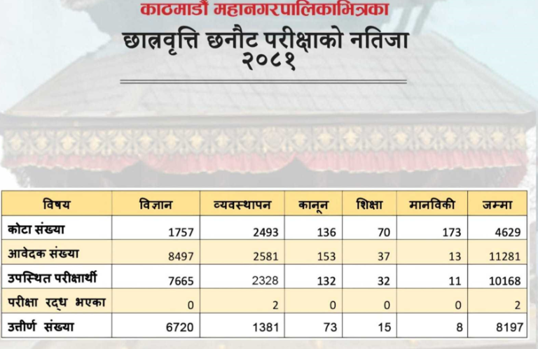महानगरको छात्रवृत्ति छनोट परीक्षामा ८ हजार १९७ जना विद्यार्थी उत्तीर्ण, पुनर्योगका लागि ३ दिनको म्याद