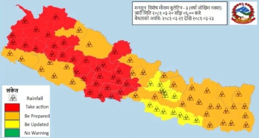 आइतबारसम्म देशका अधिकांश स्थानमा भारी वर्षाको सम्भावना