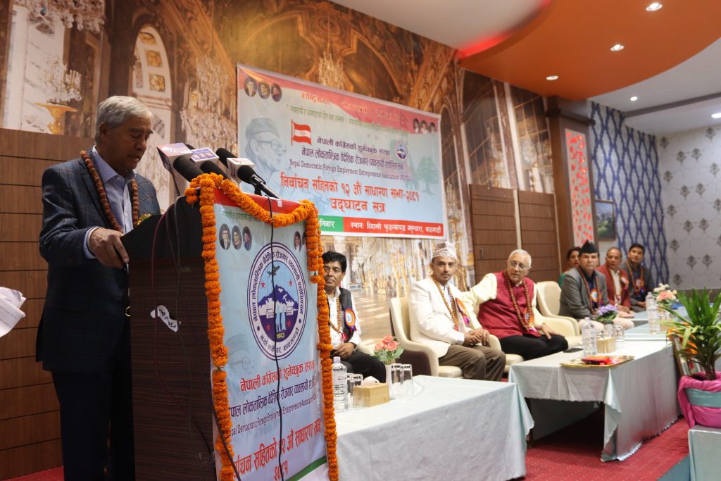 नेपाली काँग्रेसको शुभेच्छुक संस्था नेपाल लोकतान्त्रिक वैदेशिक रोजगार व्यवसायी एशोसिएसन Nepal Democratic Foreign Employment Entrepreneurs Association (NDFEEA) निर्वाचन सहितको १२ औं साधारण सभा-२०८१ उद्घाटन सत्र