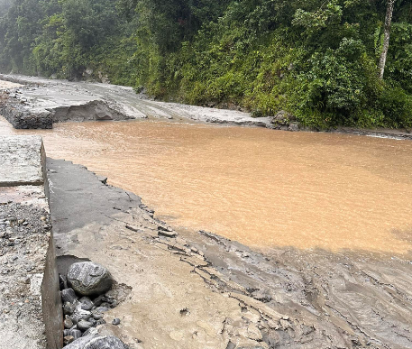 बाढीका कारण मेलम्ची–हेलम्बु सडक अवरुद्ध