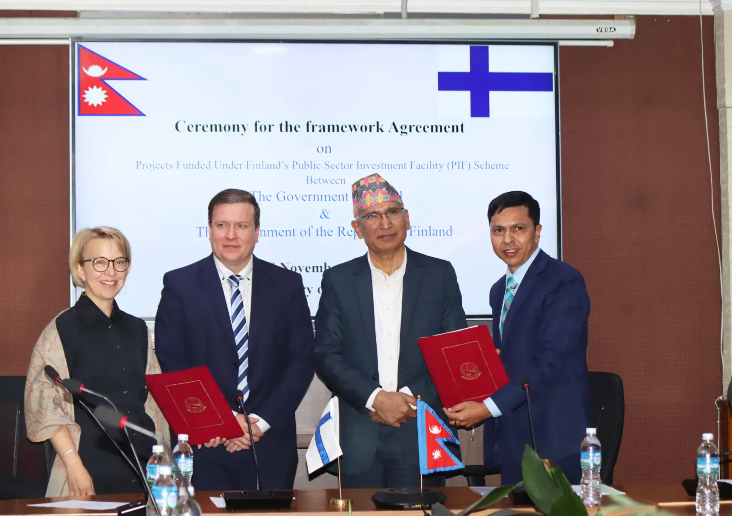 नेपाल र फिनल्याण्डबीच सार्वजनिक लगानी परिचालन परियोजनासम्बन्धी खाका सम्झौतामा हस्ताक्षर