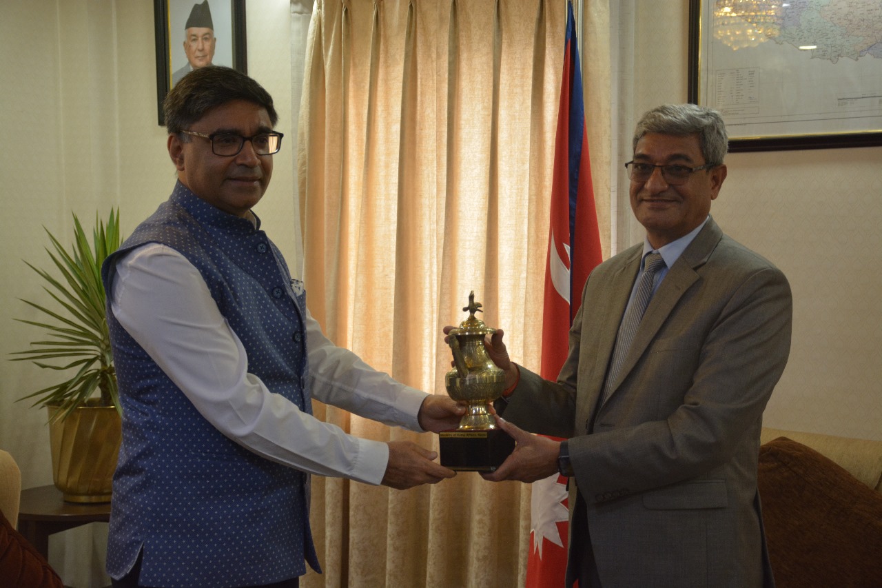 गृहमन्त्री लेखकसँग भारतीय विदेश सचिवको भेटवार्ता