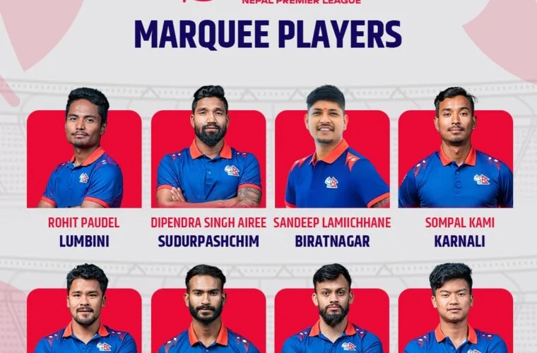 एनपीएलको आठ मार्की खेलाडीको टोली सार्वजनिक, प्रत्येक खेलाडीले न्युनतम २० लाख पाउने